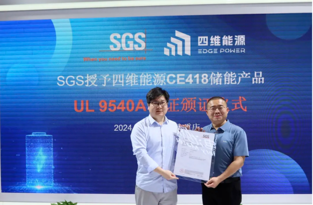 SGS为四维能源电池簇产品CE418颁发UL 9540A