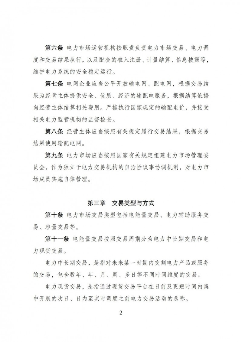 二是调整有关市场范围、运营机构、交易主体表述。新一轮电力体制改革明确了“三放开、一独立、三强化”的改革“路线图”,省(区、市)电力交易中心、售电公司、电力用户、储能企业等新兴机构和主体迅速发展,市场注册管理制度大范围推广,第10号令中相关内容需进行调整。