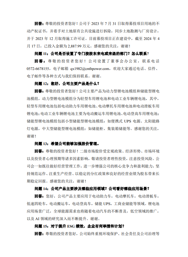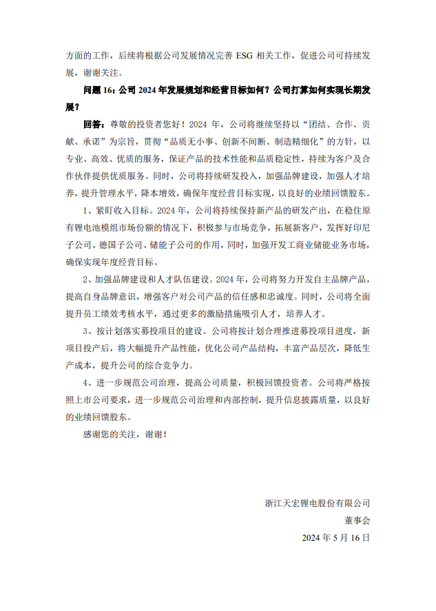 据储能界了解到,5月15日,天宏锂电发布投资者关系活动记录表。