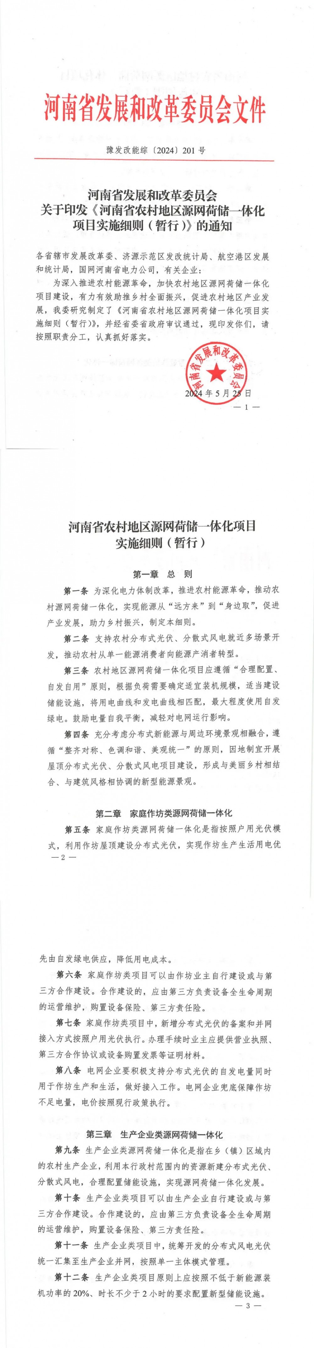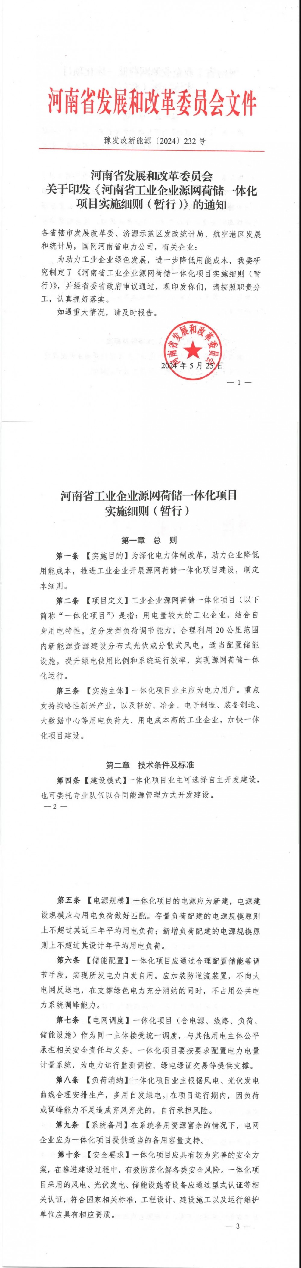 据储能界了解到,近日,河南省发展和改革委员会发布关于印发《河南省增量配电网类源网荷储一体化项目实施细则(暂行)》、《河南省农村地区源网荷储一体化项目实施细则(暂行)》、《河南省工业企业源网荷储一体化项目实施细则(暂行)》的通知。