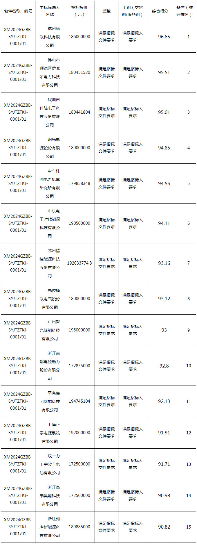 此次共15家企业入围,投标单价区间为1.15-1.30元/Wh。入围名单如下: