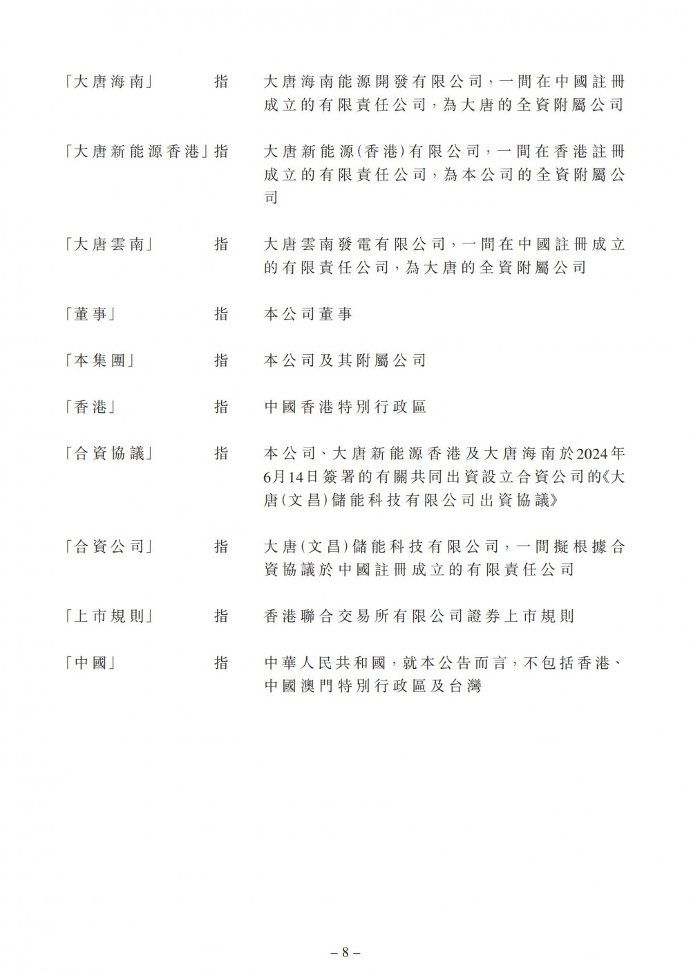 据储能界了解到,6月17日,大唐新能源发布公告称,本公司、大唐新能源香港及大唐海南订立合资协议,内容有关(其中包括)订约方共同出资设立合资公司,以共同开发文昌储能项目。