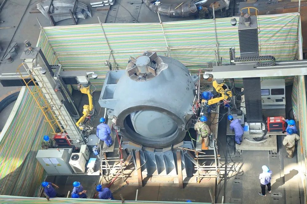 哈电电机已实现了以发电机冲片智能叠片间、焊机群控系统、机器人窄间隙焊接、定子冲片智能涂漆生产线等为代表的、典型的智能制造场景应用;双机器人工作站全自动化焊接,成功实现了“自动化焊接全过程零返修”的既定目标,标志着在抽蓄球阀、顶盖等大型结构件自动化焊接领域取得了重大突破;自动涂漆线机械手智能化改造项目实现了冲片的自动抓取、自动涂漆与控制、自动码垛,有效提升了抽蓄机组冲片涂漆质量和生产效率。