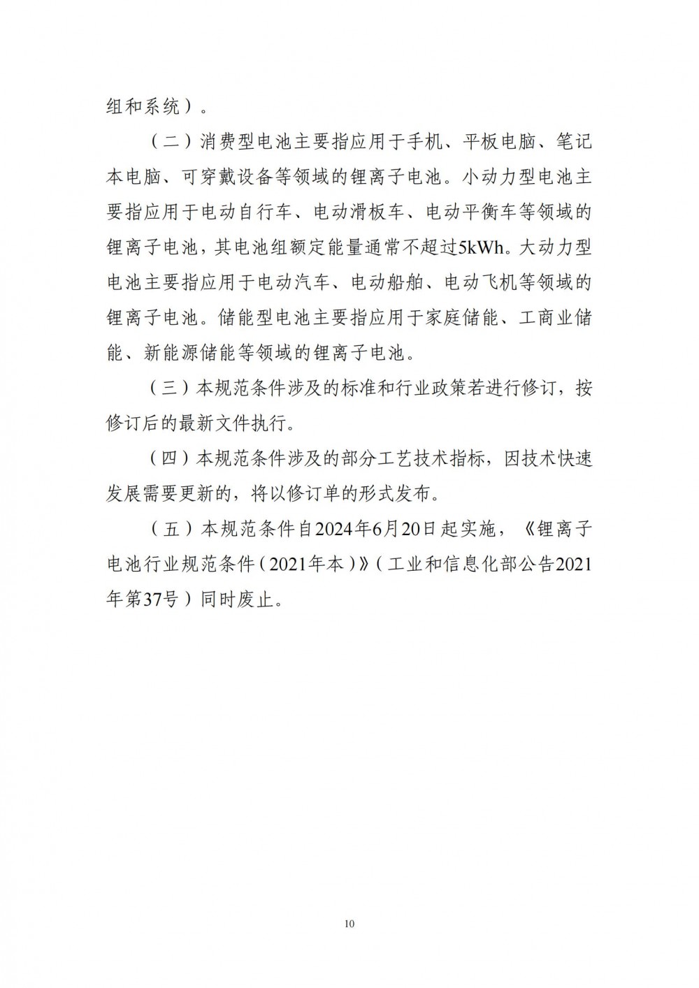 附件:1. 锂离子电池行业规范条件(2024年本)