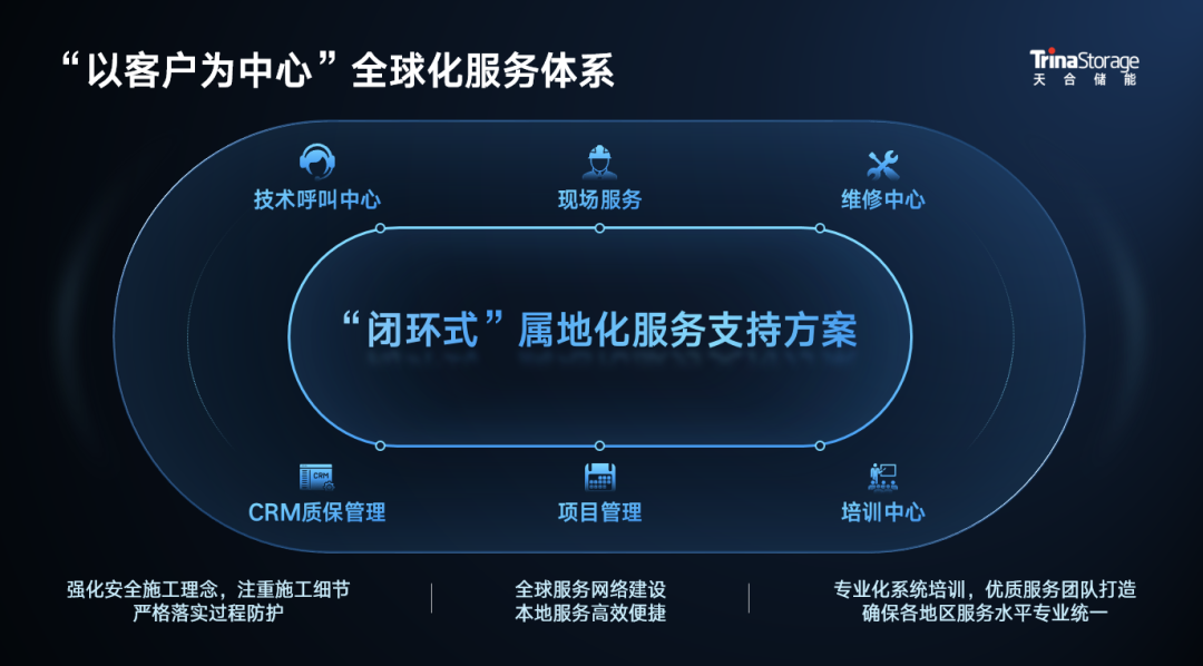 作为全球智慧能源解决方案的领导者,天合储能将持续以客户价值为中心,依托四大研发平台,用先进的技术和可靠的产品为客户带来更高的收益,加快世界的绿色可持续发展。