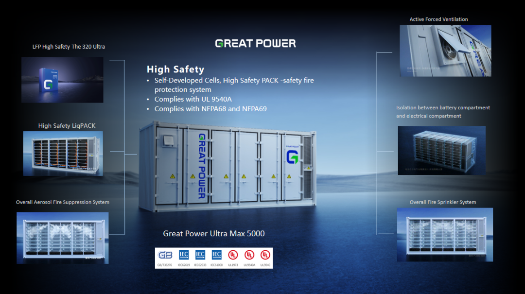 值得一提的是,本次展会,是Ultra Max 5000液冷储能集装箱在欧洲展会的首次亮相。相较于Max 3440储能集装箱,Ultra Max 5000内置防爆主动排风、气溶胶消防、EMS电池及柜体监测等六重安全系统,打造极致安全体验!