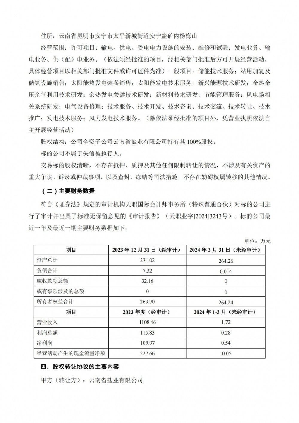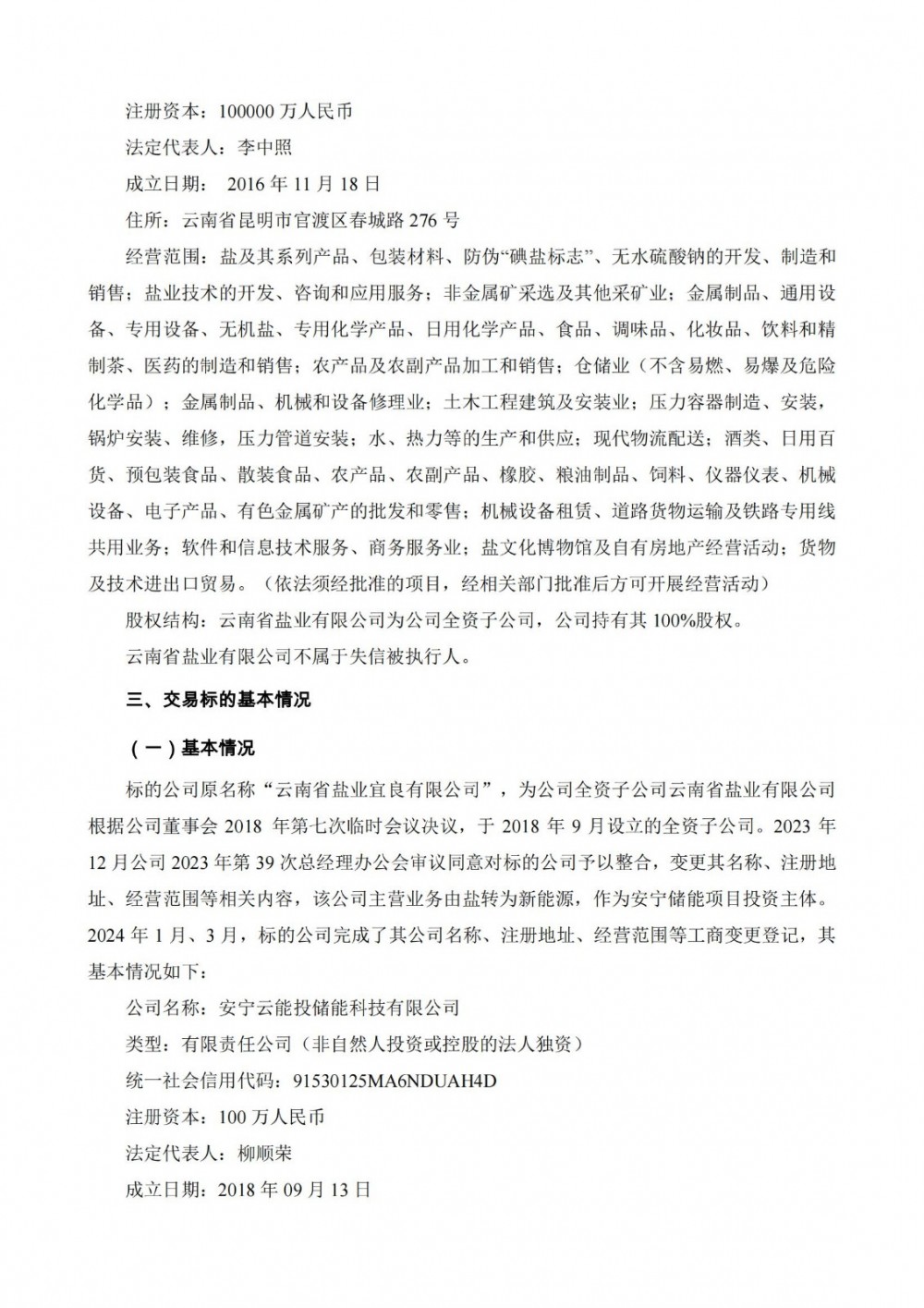 据储能界了解到,6月20日,云南能投发布公告称,公司以自有资金收购全资子公司云南省盐业有限公司所持有的安宁云能投储能科技有限公司(以下简称“安宁储能公司”)100%股权,收购价款为安宁储能公司截至2023年12月31日(收购基准日)经审计净资产账面净值人民币263.703279万元。本次股权收购完成后,公司将直接持有安宁储能公司100%的股权,安宁储能公司由公司全资孙公司变更为公司全资子公司,为昆明安宁300MW压缩空气储能示范项目投资主体。