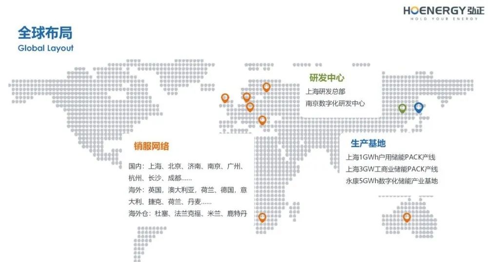 近年来,弘正储能积极布局海外市场,目前公司已在全球四十多个国家和地区广泛开展业务,着力建设高效规范的销售服务体系,积累了丰富的海外研发设计与项目应用经验,在欧洲等重要海外市场占有一席之地。同时,针对不同国家和地区多元化场景需求,弘正储能定制化研发了数字化平台、工商业储能、户用储能等多场景解决方案,致力于为用户提供更加符合需求的产品、解决方案和全生命周期服务。