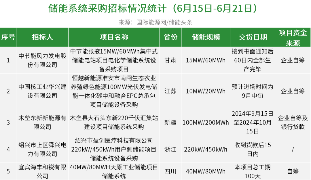 5个储能系统招标