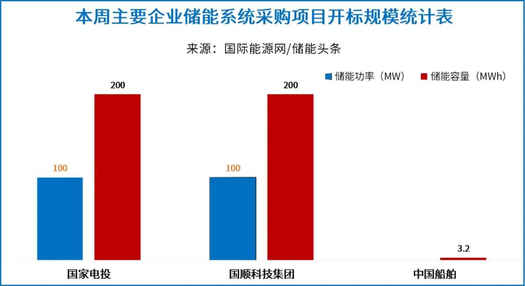 中国船舶有1个项目开标,总规模为3200kWh,中船动力研究院中标。