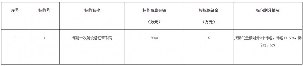 据储能界了解到,6月24日,南方电网发布储能一次舱设备框架采购招标公告。项目预算金额为3000万,按标的金额划分2个标包,标包1为60%,标包2为40%。