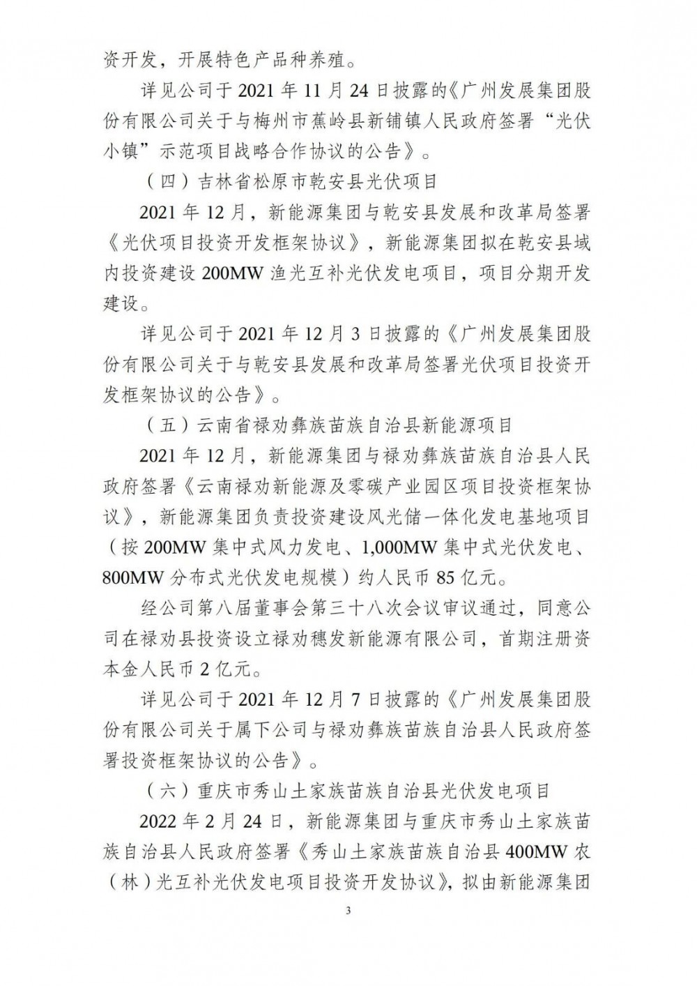 2020年以来,广州发展集团及属下全资子公司广州发展新能源集团股份有限公司与多地人民政府签署了多项新能源项目框架协议,现将该类项目框架协议进展情况公告如下: