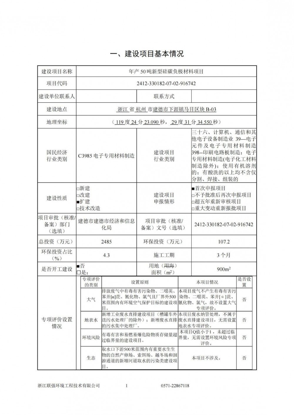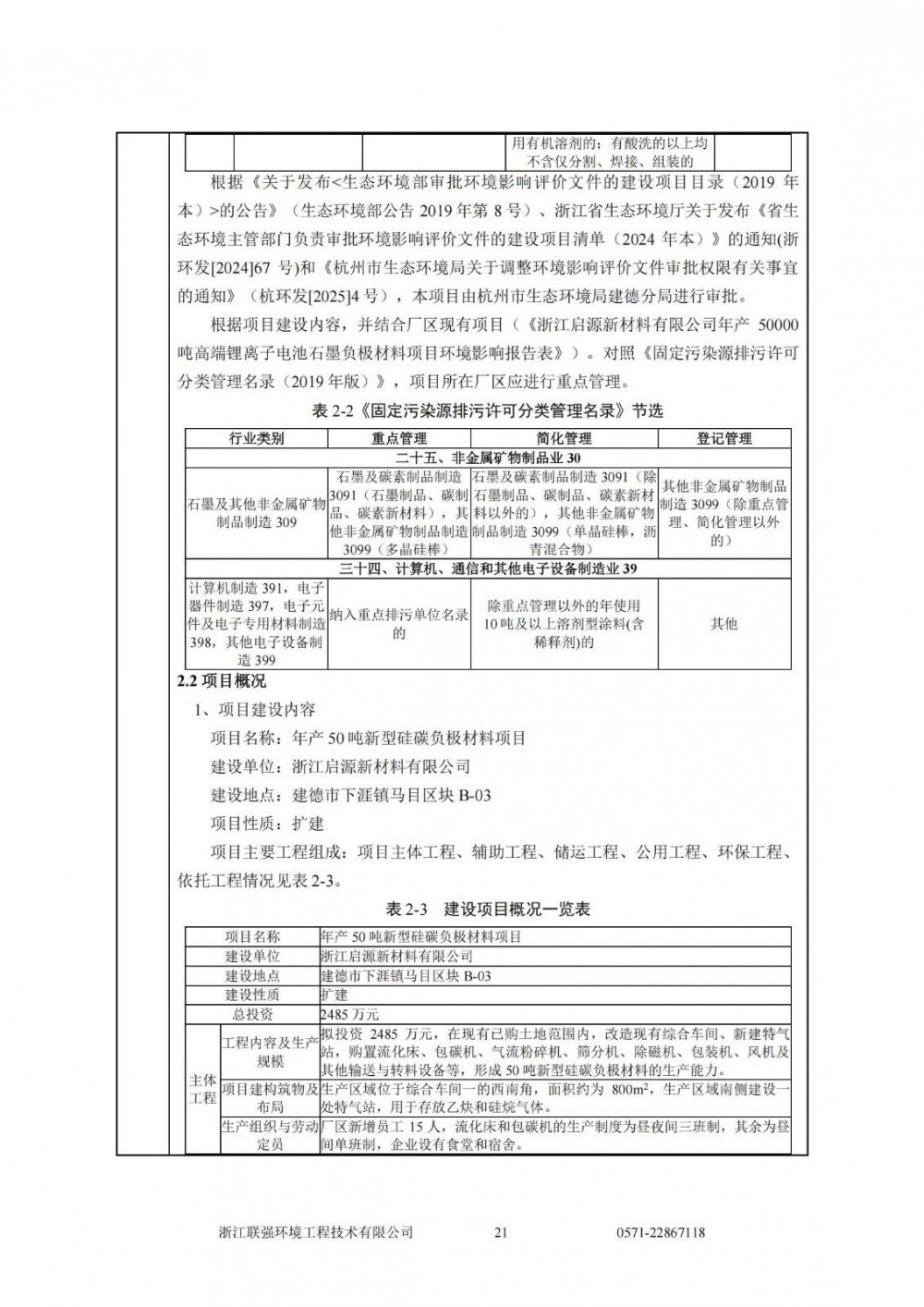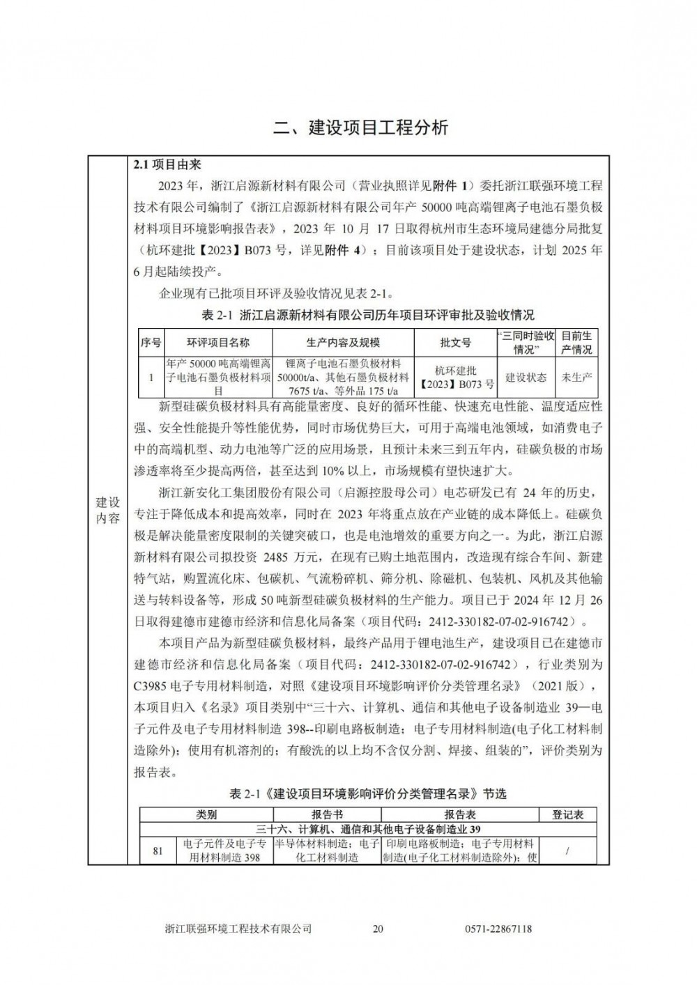 环评文件显示,项目选址浙江省杭州市建德市,浙江启源新材料有限公司拟投资2485万元,在现有已购土地范围内,改造现有综合车间、新建特气站,购置流化床、包碳机、气流粉碎机、筛分机、除磁机、包装机、风机及其他输送与转料设备等,形成50吨新型硅碳负极材料的生产能力。