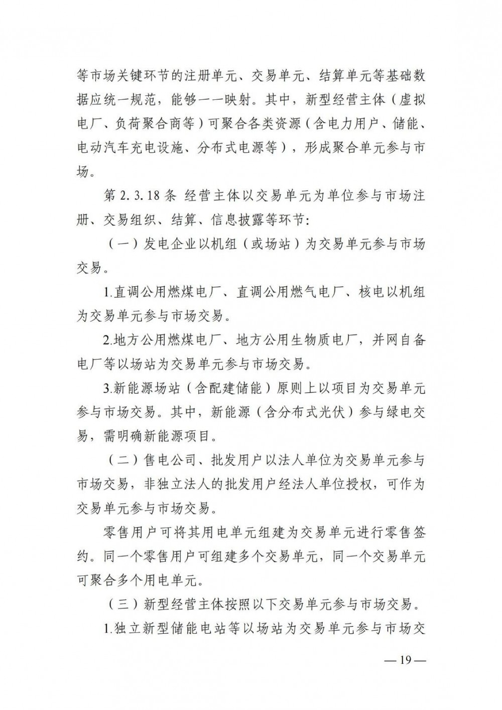 2.分布式新能源(含配建储能)。分布式新能源作为分布式电源经营主体以独立或聚合方式报量报价参与现货市场,或作为价格接受者参与现货市场。以价格接受者参与市场的分布式新能源,出清时默认其申报价格为现货市场申报价格下限,参与市场出清。