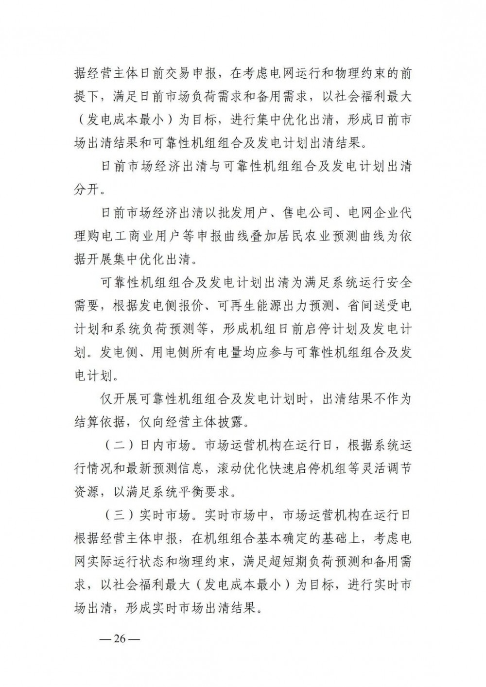在日前市场上,文件提出要采取“发电侧报量报价、用户侧报量报价”模式,且采用集中优化出清的方式开展。新能源项目和用户自愿参与日前市场。其中,新能源按自然年自愿选择参与日前市场。现阶段,对于自愿参与日前市场的新能源项目,按短期功率预测作为出清上限参与日前市场出清。