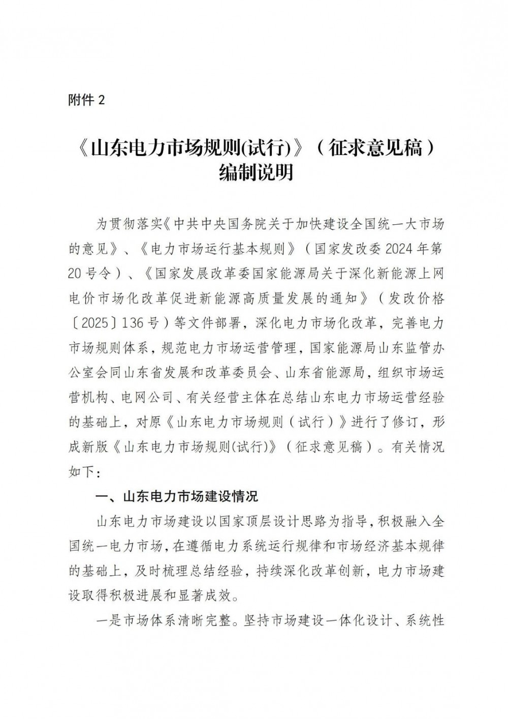 附件2:《山东电力市场规则(试行)》(征求意见稿)编制说明.pdf