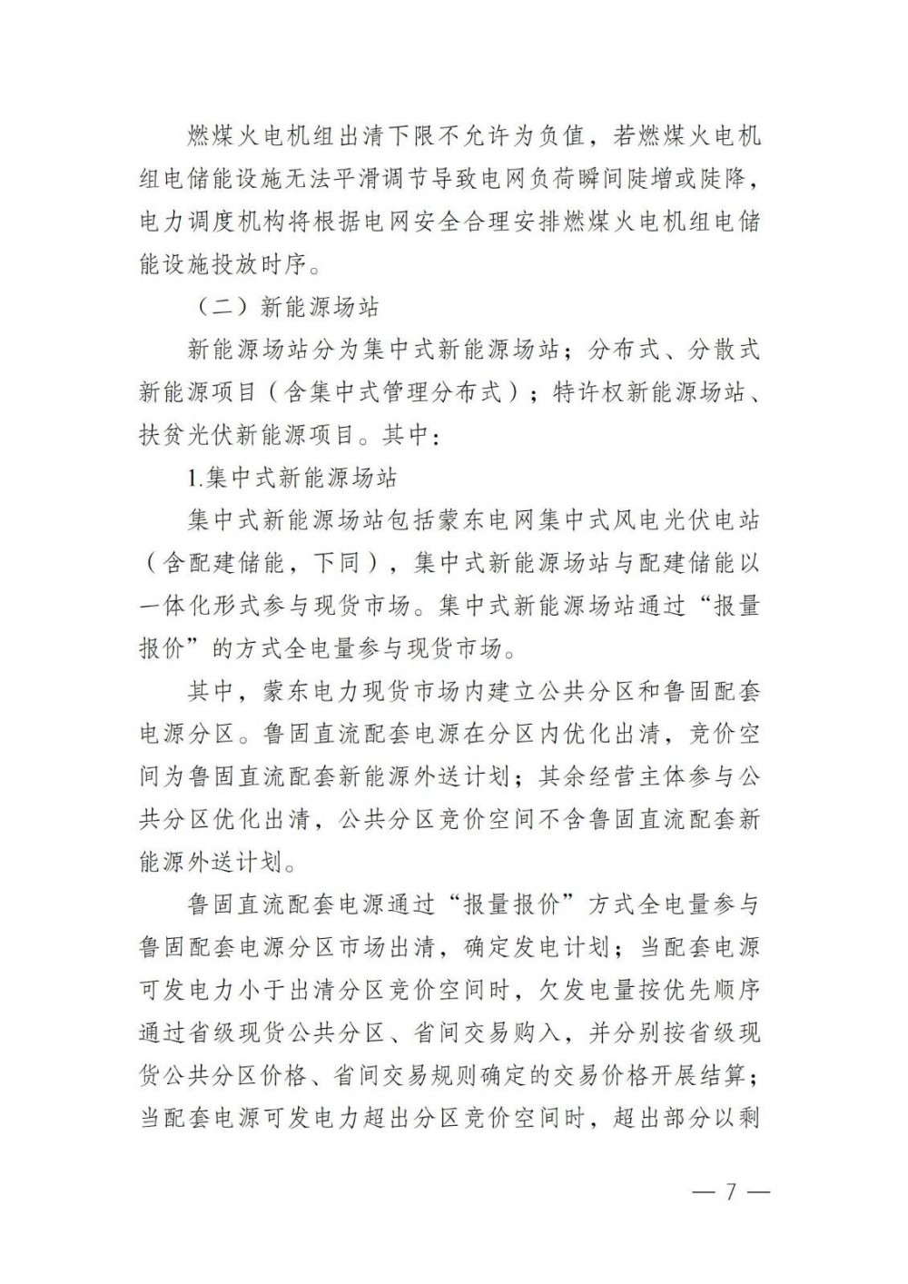 《蒙东现货电能量市场交易实施细则V3.0》(征求意见稿)提到,新能源场站分为集中式新能源场站;分布式、分散式新能源项目(含集中式管理分布式);特许权新能源场站、扶贫光伏新能源项目。其中: