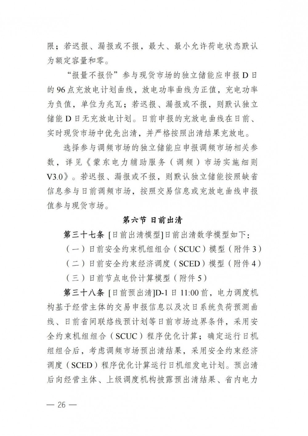 集中式新能源场站包括蒙东电网集中式风电光伏电站(含配建储能),集中式新能源场站与配建储能以一体化形式参与现货市场。集中式新能源场站通过“报量报价”的方式全电量参与现货市场。新能源场站与其投资建设的配套储能装置作为联合主体参与现货市场;配套储能满足相关独立储能要求时,可自愿转为独立储能运行,并作为独立储能参与现货市场。