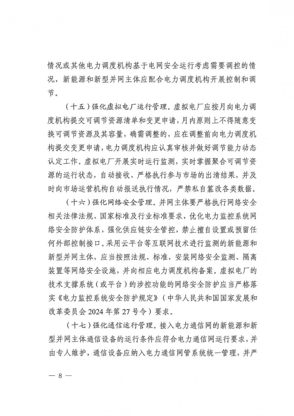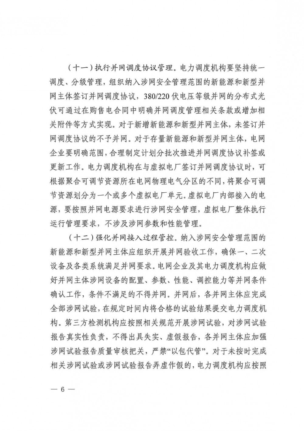 并网主体包括海上风电、陆上风电、集中式光伏、分布式光伏、分散式风电等全部新能源,以及新型储能、虚拟电厂等全部新型并网主体。电力调度机构应根据国家标准及行业标准等规定要求,分类提出涉网安全管理要求,将必须管的管到位。纳入涉网安全管理范围的并网主体均应服从调度统一指挥,按照电力调度机构有关要求加强涉网安全管理。