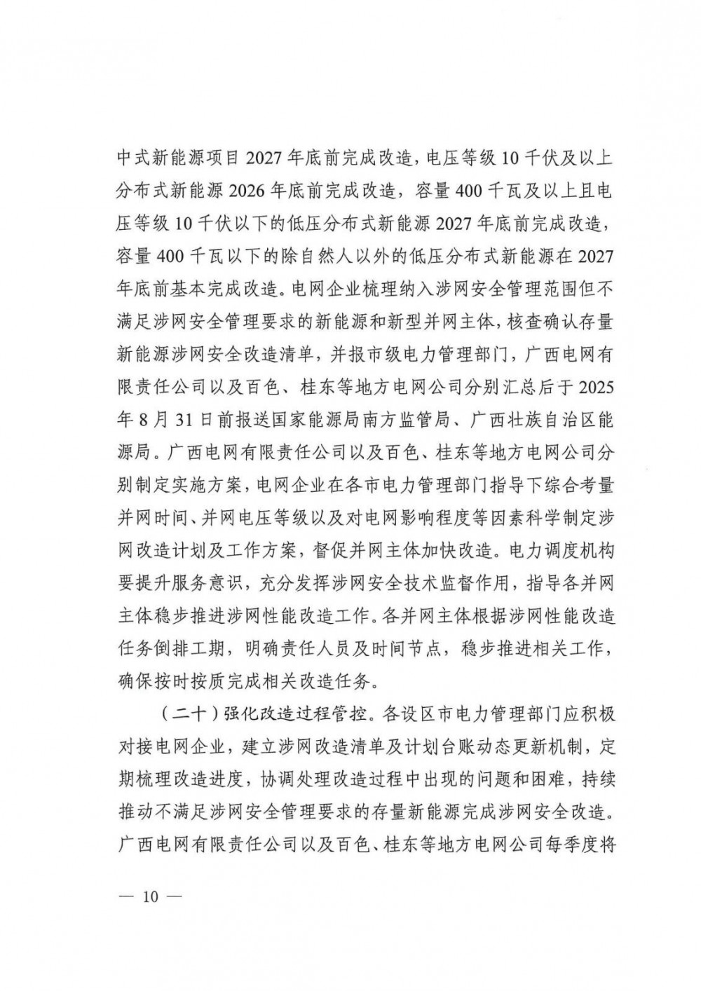 8月1日,国家能源局南方监管局发布关于提升广西壮族自治区新能源和新型并网主体涉网安全能力的通知。文件提出,明确涉网安全管理范围。应纳入涉网安全管理范围的