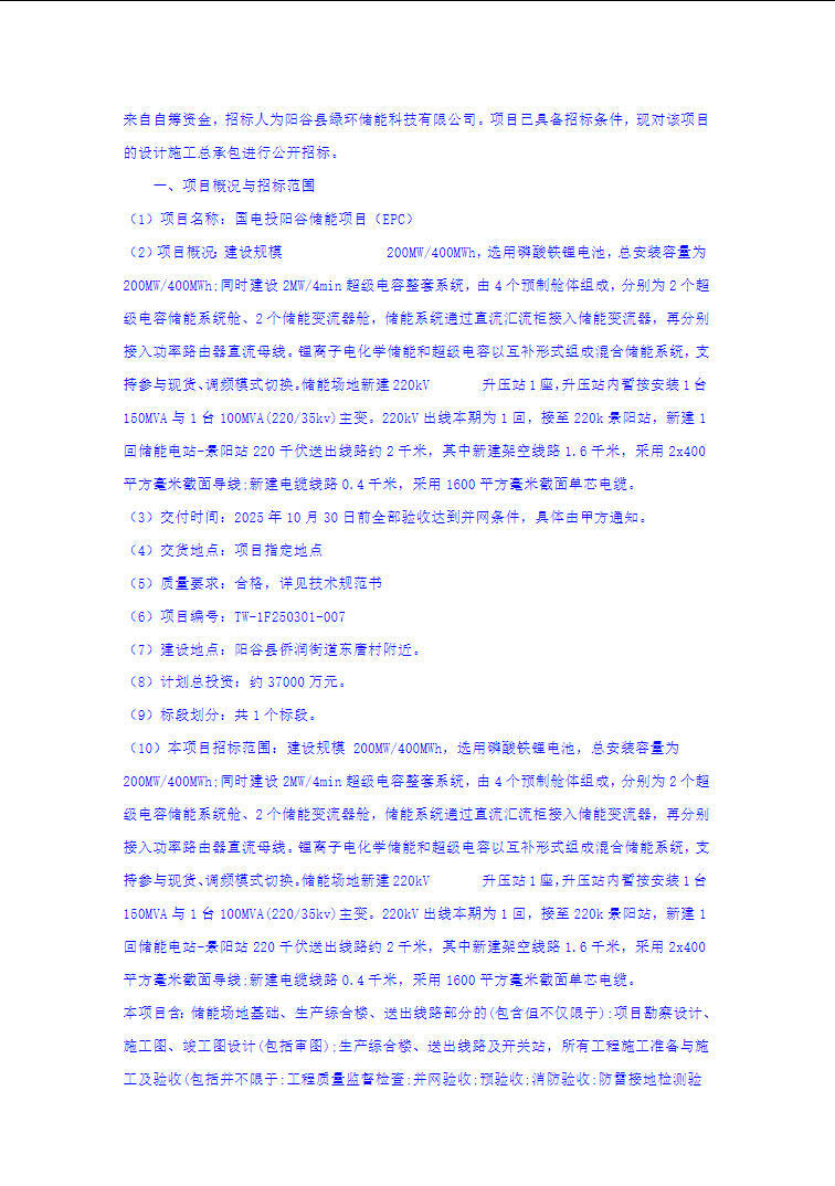 近日,国电投阳谷储能项目(EPC)招标公告发布。