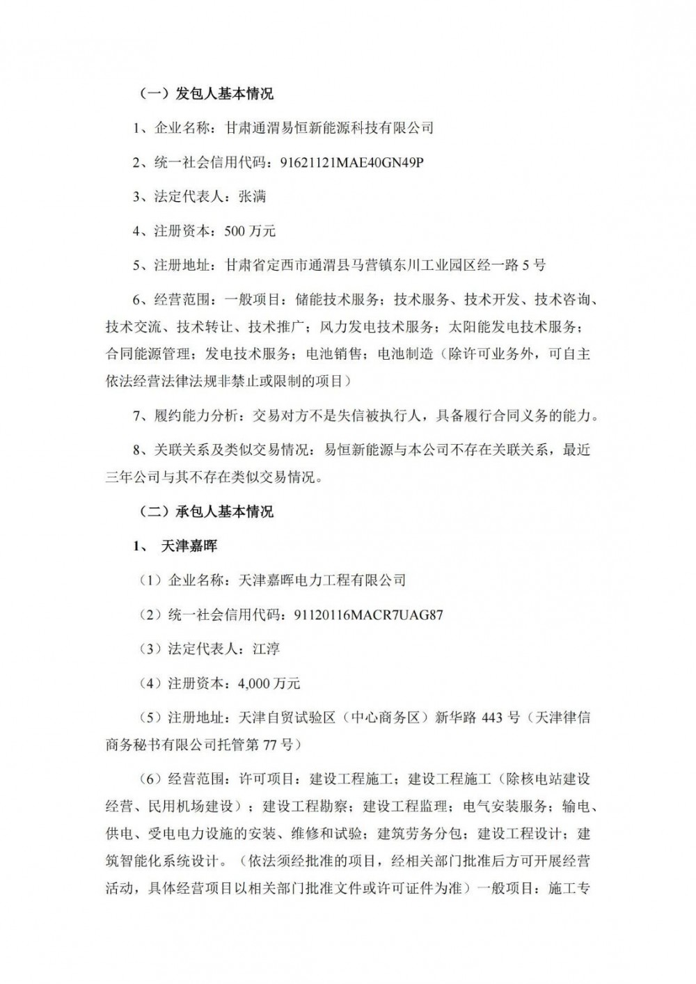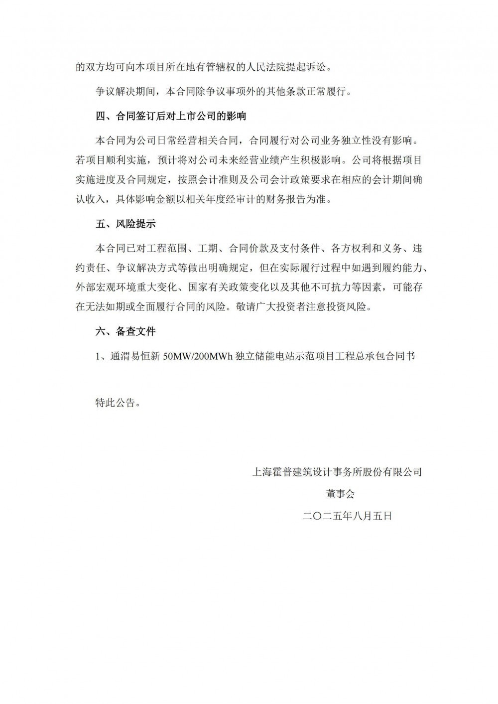 8月4日,霍普股份发布公告称,公司全资子公司天津嘉晖电力工程有限公司与河南楚能电力工程有限公司、湖南鸿源电力建设有限公司作为联合体,与发包人甘肃通渭易恒新能源科技有限公司签订《通渭易恒新50MW/200MWh独立储能电站示范项目工程总承包合同书》。