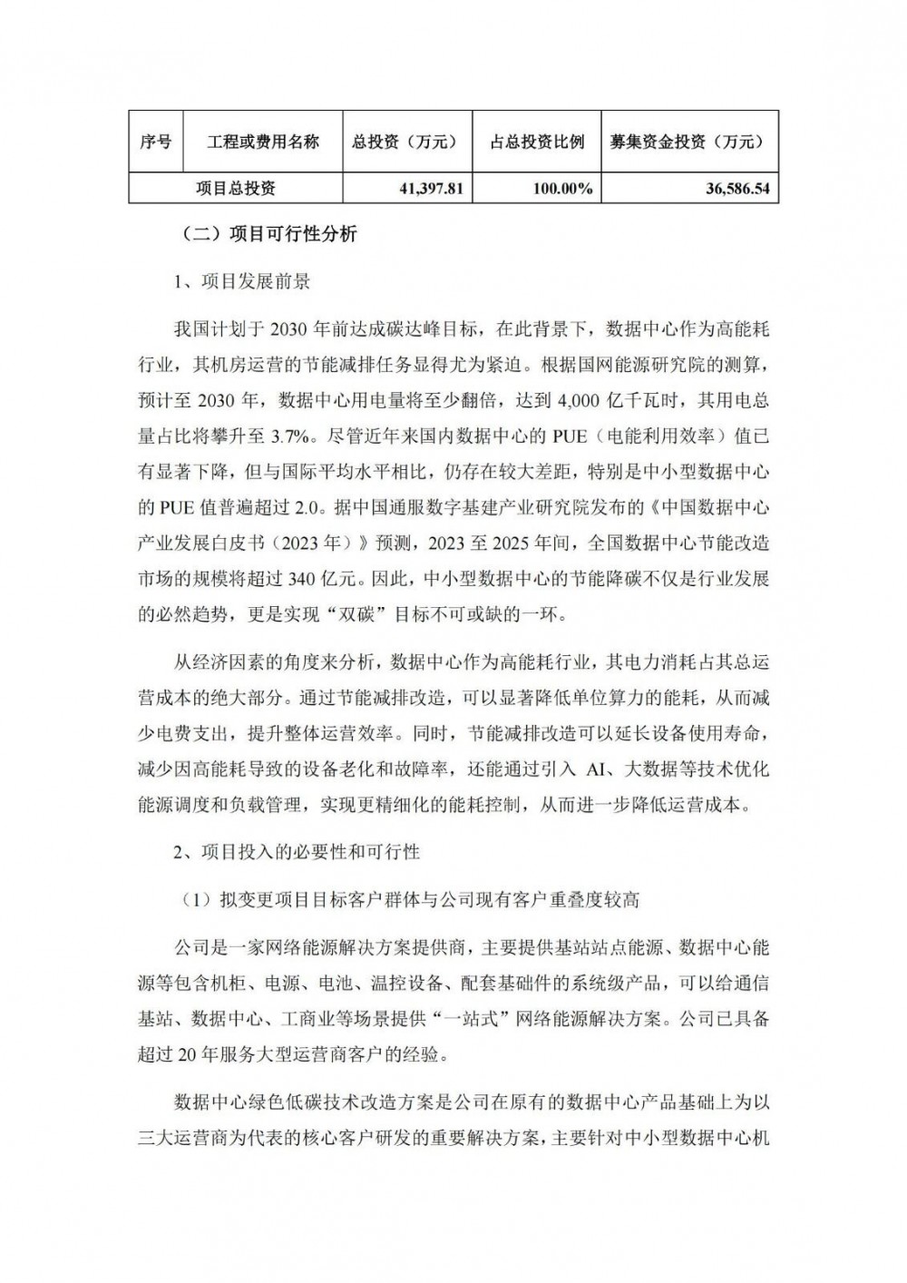 近日,科信技术发布公告称,同意公司将“储能锂电池系统研发及产业化项目”中尚未使用的募集资金36,586.54万元(含扣除相关手续费后的利息收入及现金管理收入,实际转出金额以转出当日募集资金专户余额为准)变更用于“数据中心绿色低碳技术改造项目”,该议案尚需提交公司股东大会审议。