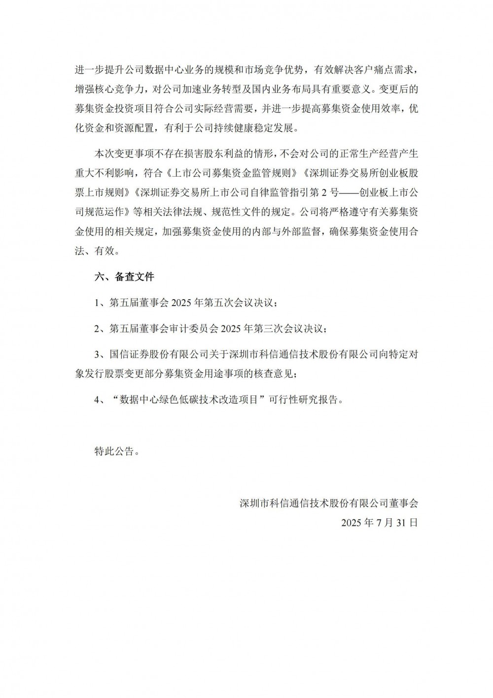 科信技术表示,本次变更募集资金用途是公司结合当前市场环境、行业发展趋势及未来战略进一步提升公司数据中心业务的规模和市场竞争优势,有效解决客户痛点需求,增强核心竞争力,对公司加速业务转型及国内业务布局具有重要意义。变更后的募集资金投资项目符合公司实际经营需要,并进一步提高募集资金使用效率,优化资金和资源配置,有利于公司持续健康稳定发展。
