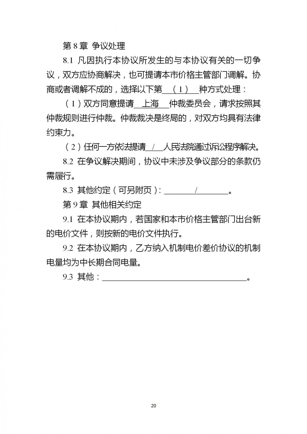 第八条 其他中长期交易电量
