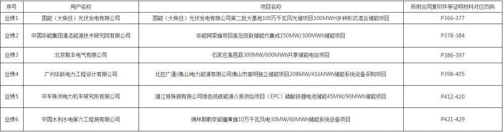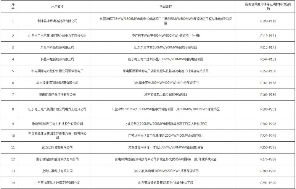 中标候选人第2名:山东电工时代能源科技有限公司项目业绩汇总表