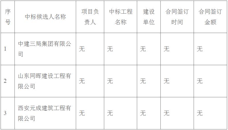 中建三局集团有限公司、西安元成建筑工程有限公司、山东同晖建设工程有限公司、山东泰恒建设工程有限公司、陕西为力建设工程有限公司