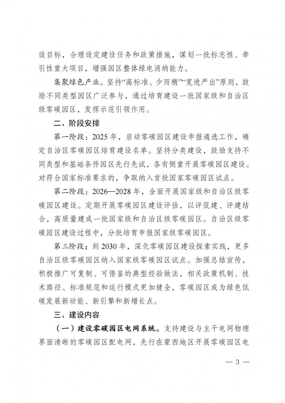 第二阶段:2026-2028年,全面开展国家级和自治区级零碳园区建设。自治区级零碳园区建设过程中,分批培育申报国家级零碳园区。