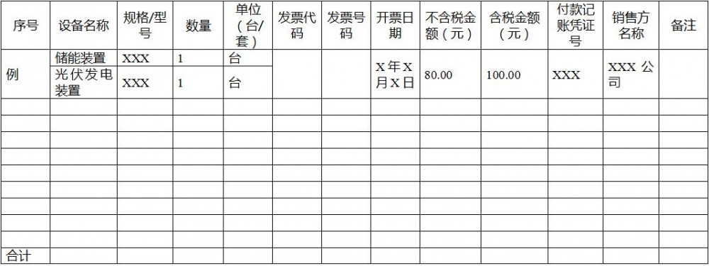 XX企业XX项目设备购置发票清单