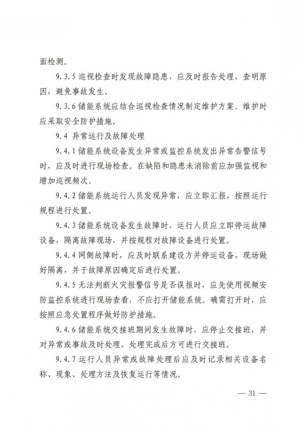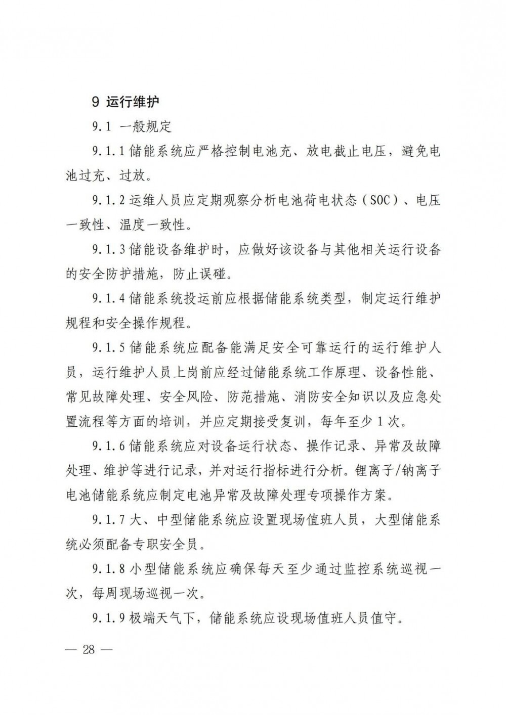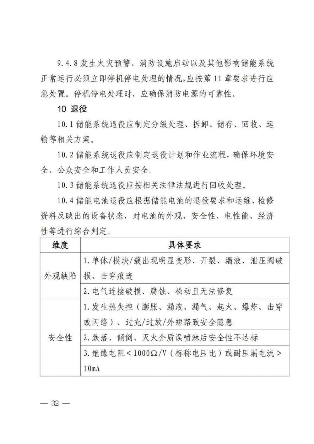 文件规定了电池强制退役的情况,包括:热失控、耐压击穿、绝缘失效;误操作导致过充/过放/过载,经评估不安全;预制舱/电池簇跌落、倾倒后安全性不满足;电池管理系统频繁报警,维护无效;能量衰减加速(如3个月内容量下降>10%);达到标称循环次数(如5000次后容量<80%额定值)等。