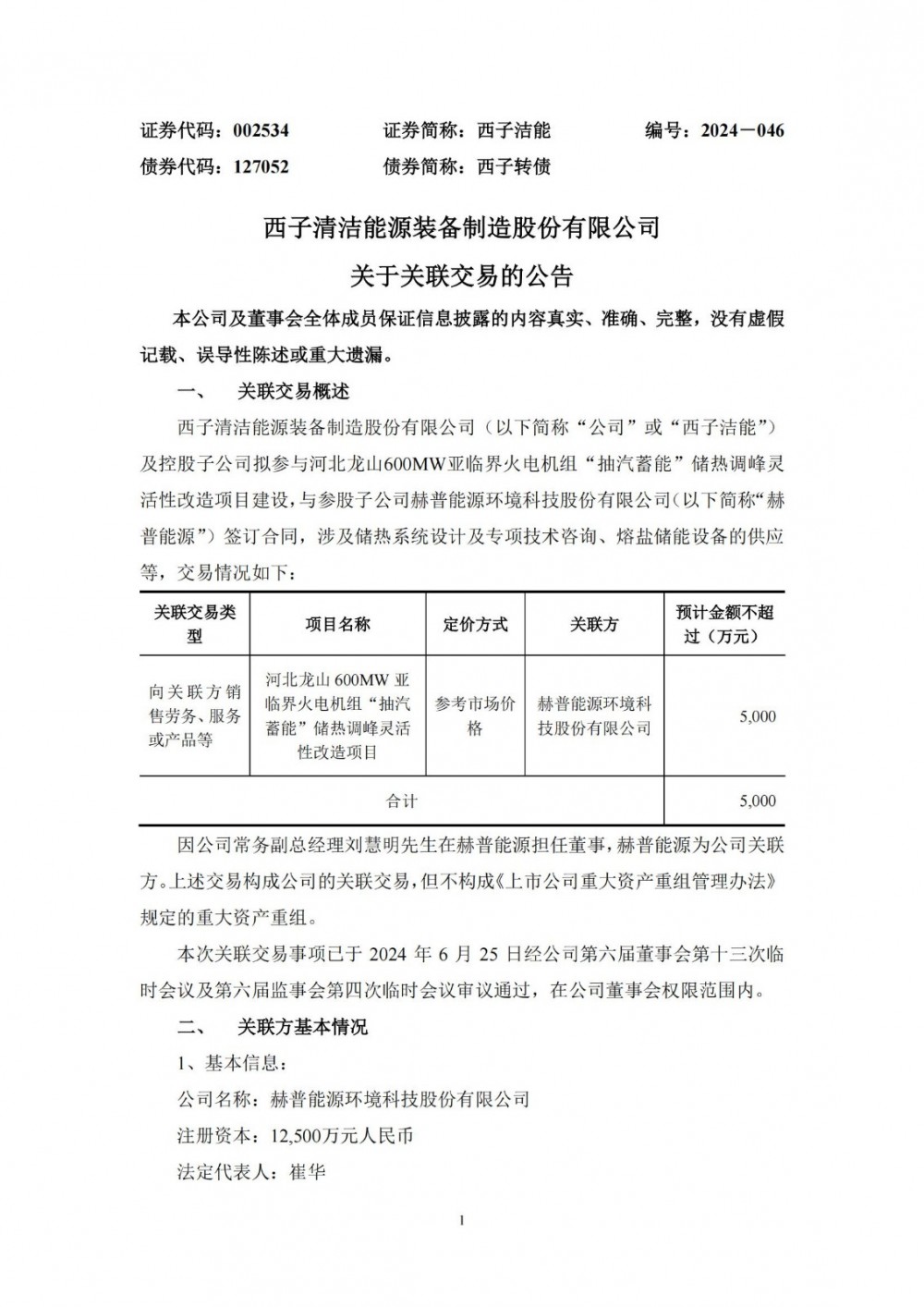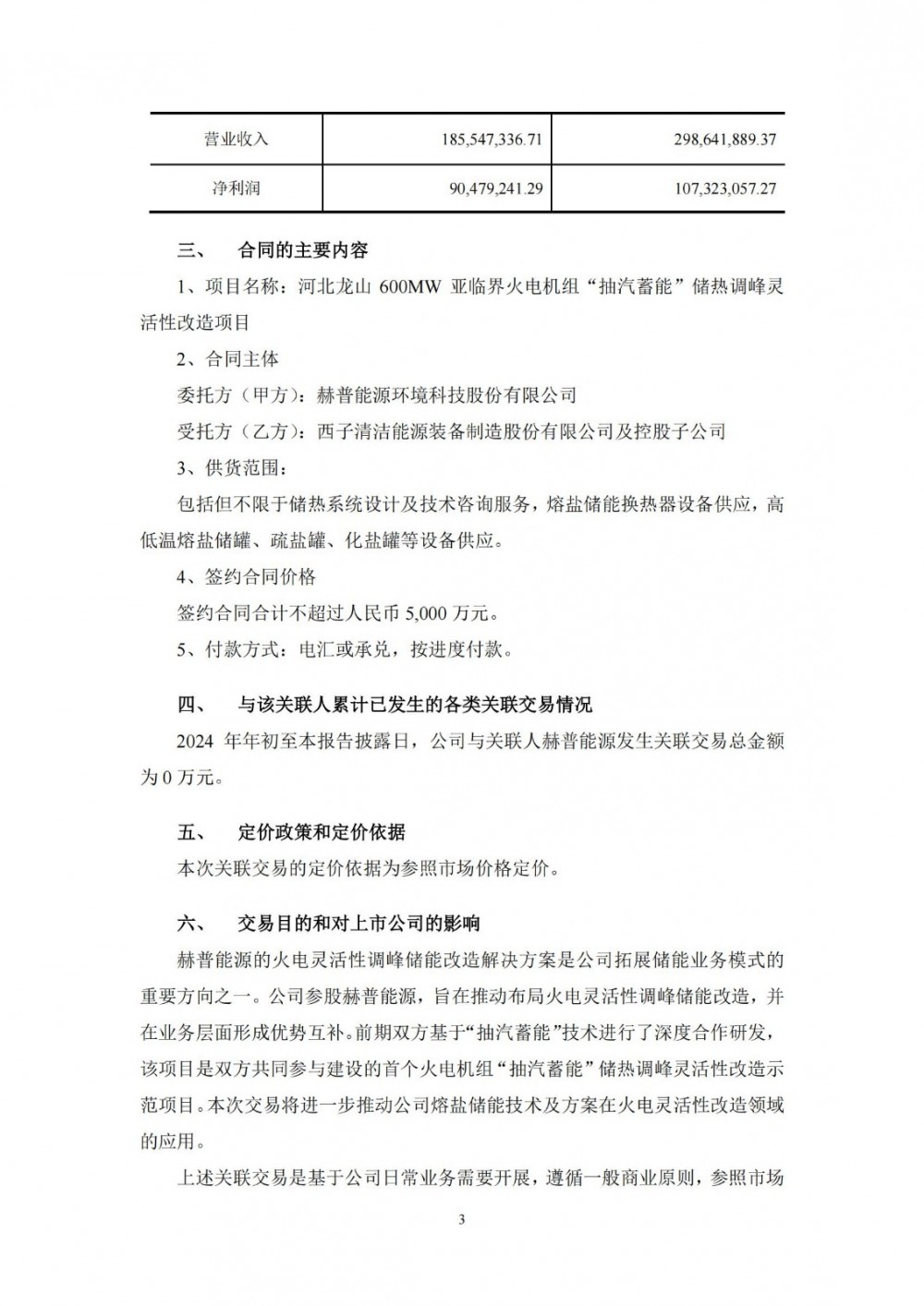 据储能界了解到,6月25日,西子洁能发布公告称,公司及控股子公司拟参与河北龙山600MW亚临界火电机组“抽汽蓄能”储热调峰灵活性改造项目建设,与参股子公司赫普能源环境科技股份有限公司(以下简称“赫普能源”)签订合同,涉及储热系统设计及专项技术咨询、熔盐储能设备的供应等。交易情况如下: