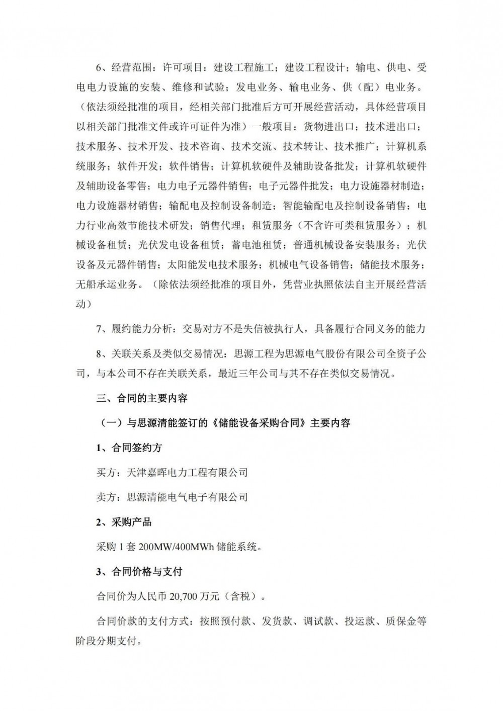 公告显示,根据霍普股份全资子公司天津嘉晖电力工程有限公司前期取得的阆苑储能项目实施需要,天津嘉晖于近日与思源清能电气电子有限公司、上海思源输配电工程有限公司签订采购合同,合同总价款合计为2.32亿元。
