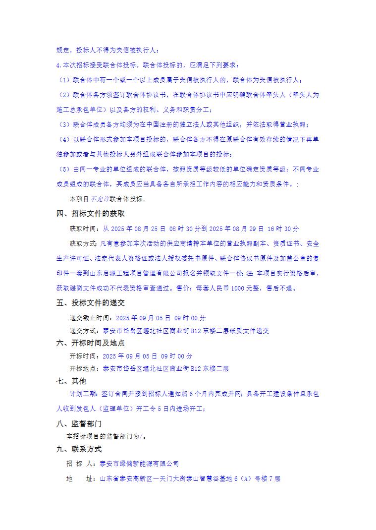 8月25日,山东省泰安市200MW/800MWh新型独立储能示范项目设计施工总承包(EPC)竞争性磋商公告发布。