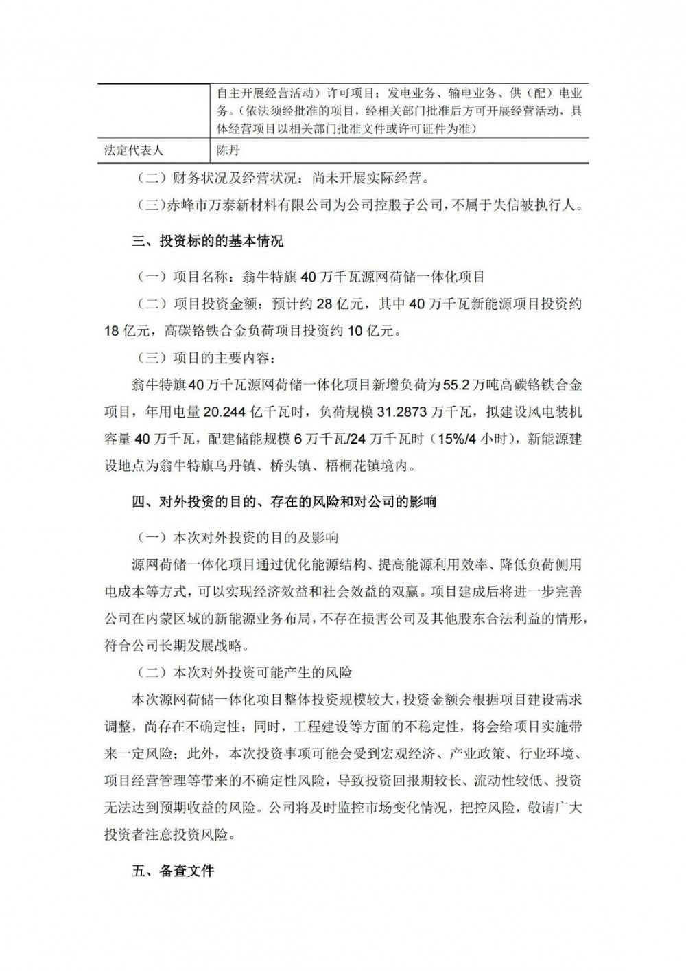 8月25日晚,双杰电气发布公告称,控股子公司赤峰市万泰新材料有限公司拟投资建设翁牛特旗40万千瓦源网荷储一体化项目(以下简称“源网荷储一体化项目”)。源网荷储一体化项目总投资约28亿元,其中40万千瓦新能源项目投资约18亿元,高碳铬铁合金负荷项目投资约10亿元。