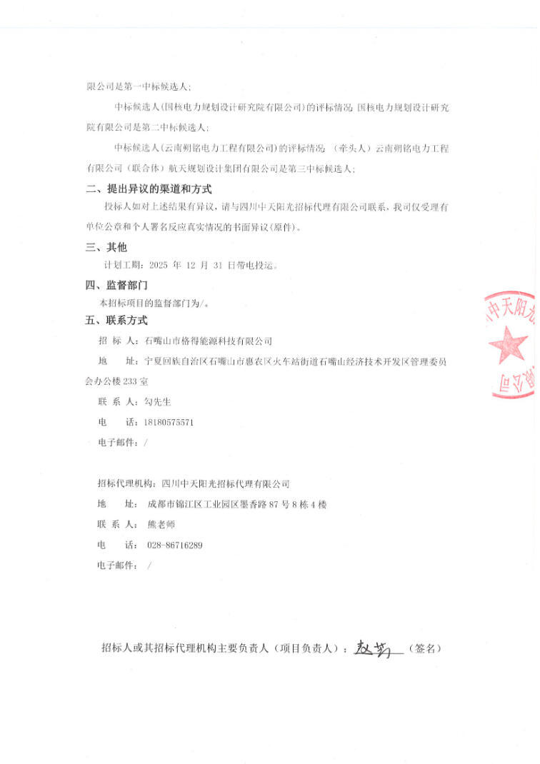 8月27日,石嘴山市格得能源科技有限公司磷酸铁锂电池储能电站新建项目EPC总承包工程中标候选人公示。