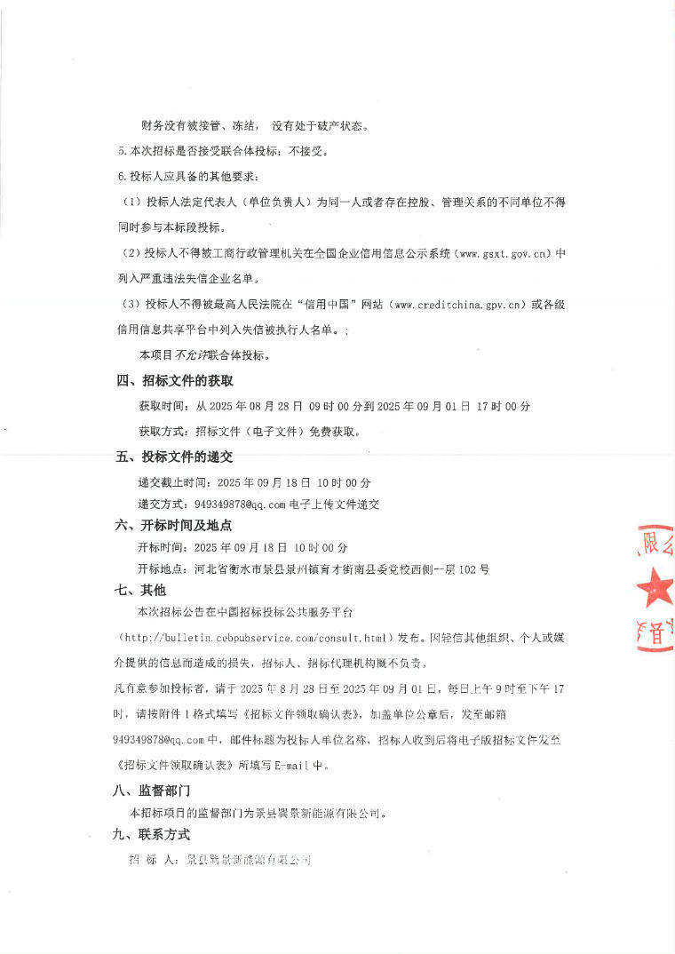 8月28日,中能国电景县100MW/400MWh共享储能项目勘察设计招标公告发布。