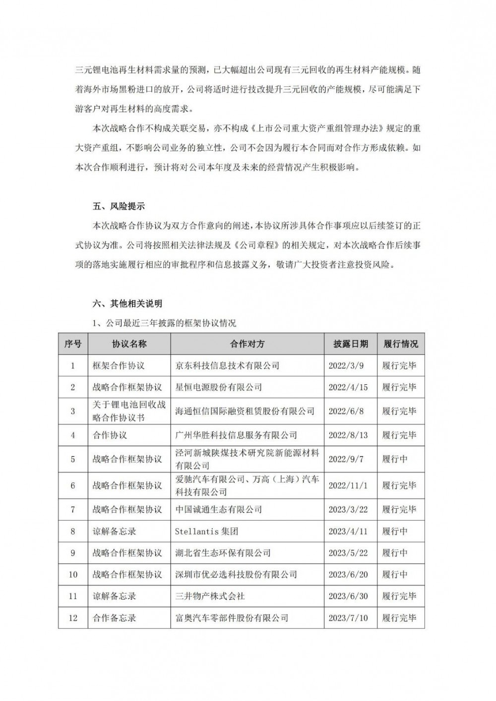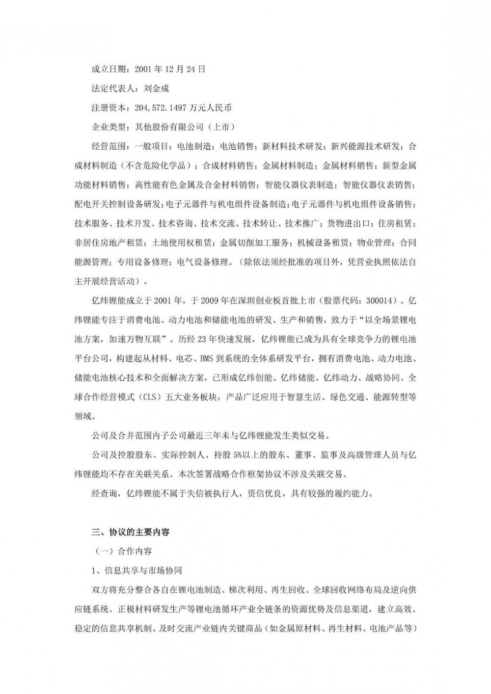 双方将充分整合各自在锂电池制造、梯次利用、再生回收、全球回收网络布局及逆向供应链系统、正极材料研发生产等锂电池循环产业全链条的资源优势及信息渠道,建立高效、稳定的信息共享机制。及时交流产业链内关键商品(如金属原材料、再生材料、电池产品等)的市场供需、价格动态及技术发展趋势等信息,实现信息互通有无,共同提升市场洞察力与决策效率。