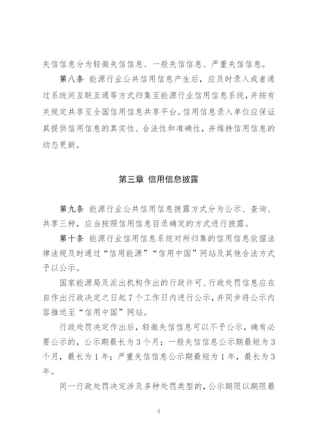 国家能源局及派出机构作出的行政许可、行政处罚信息应在自作出行政决定之日起7个工作日内进行公示,并同步将公示内容推送至“信用中国”网站。