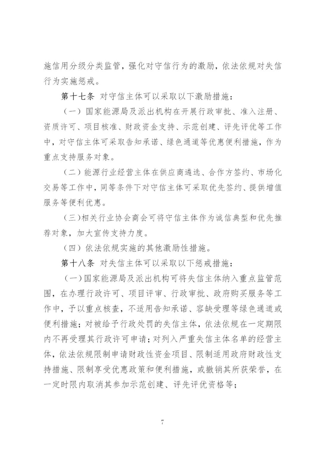 国家能源局组织制定并动态更新能源行业信用信息应用清单,推动信用信息共享和应用,指导开展信用评价,实施信用分级分类监管,强化对守信行为的激励,依法依规对失信行为实施惩戒。
