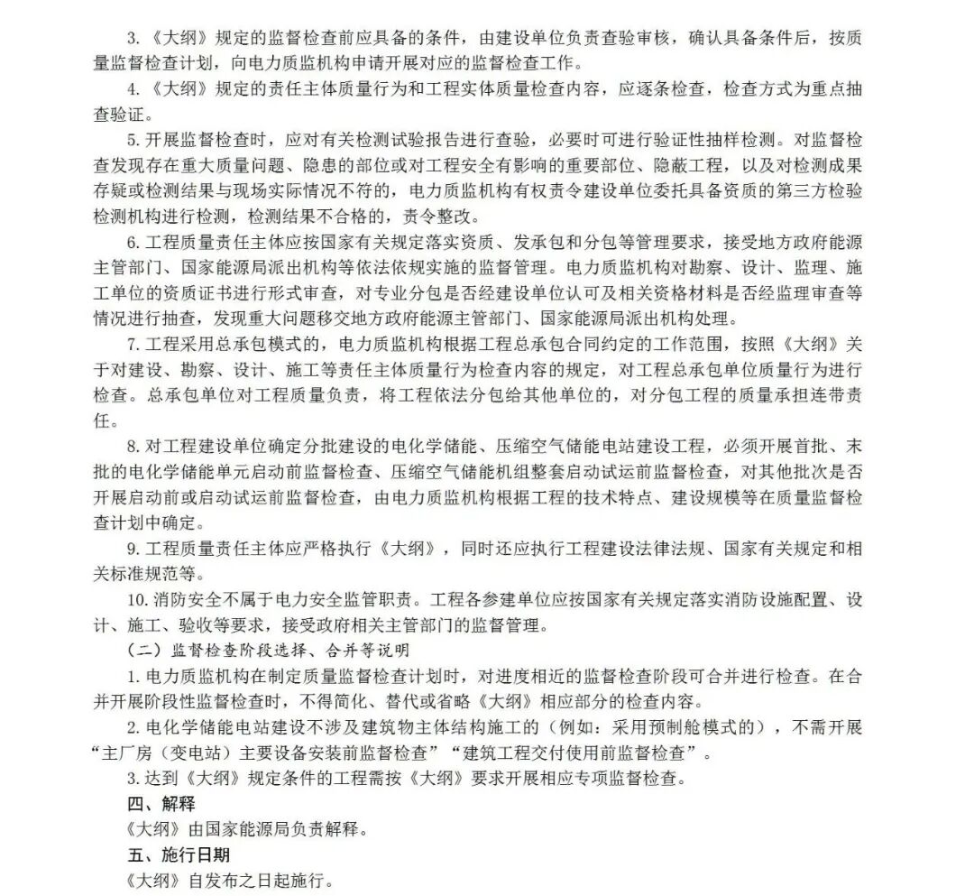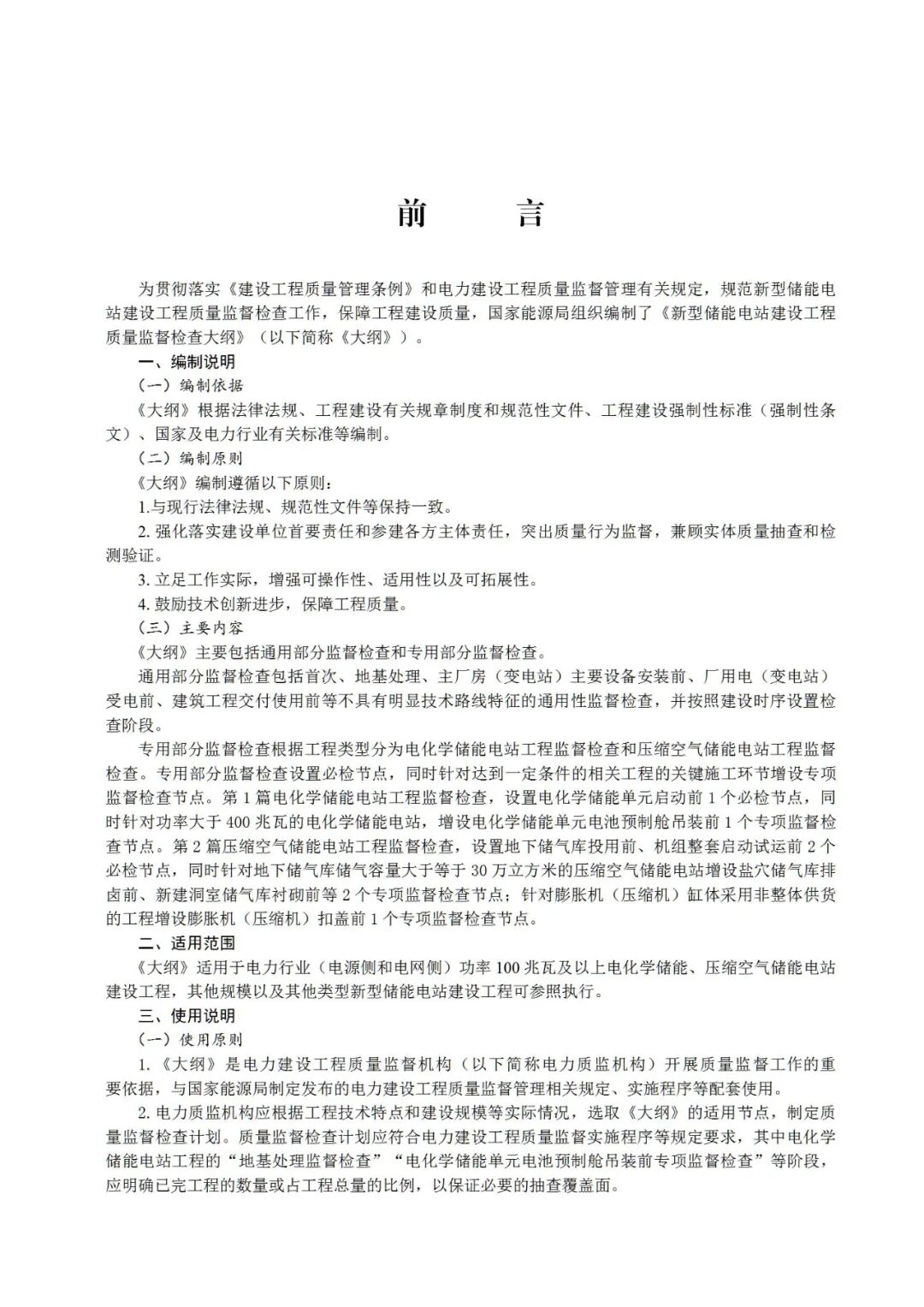《大纲》适用于电力行业(电源侧和电网侧)功率100兆瓦及以上电化学储能、压缩空气储能电站建设工程,其他规模以及其他类型新型储能电站建设工程可参照执行。