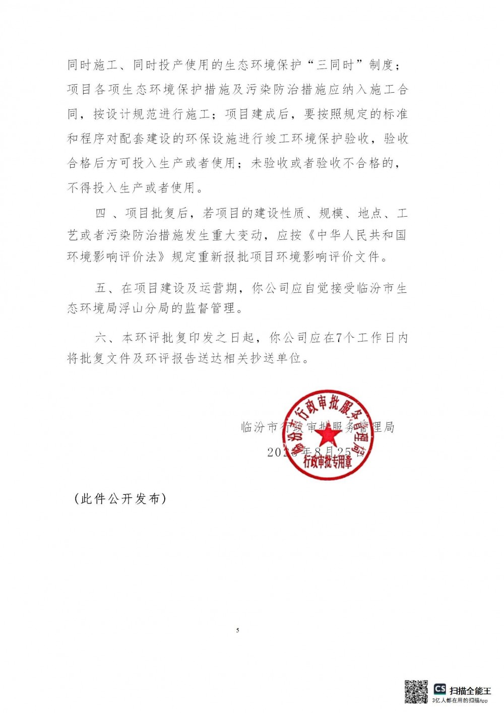 近日,临汾市行政审批服务管理局发布关于山西一叶150MW205MWh独立储能项目等5个项目环境影响评价文件审批决定公告。