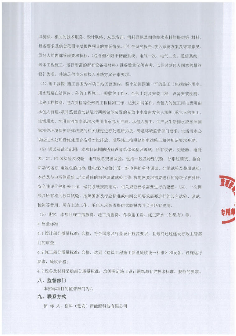 本招标项目包括但不限于:本项目①整个储能电站(包括但不限于升压站、储能区、涉网工作等)的前期工作服务及手续办理、四通一平、绿化迁移及恢复、运输通道的建设与改造、勘察设计、供货、施工、试验、调试、检测、验收、资料移交等,负责办理各项专项验收、电网并网手续及许可、项目及电网所涉及专题报告的编制,负责与电网、政府相关部门的关系协调 ②负责项目全部协调工作、临时用地的租赁、采伐手续的办理及植被恢复,负责办理施工许可证。