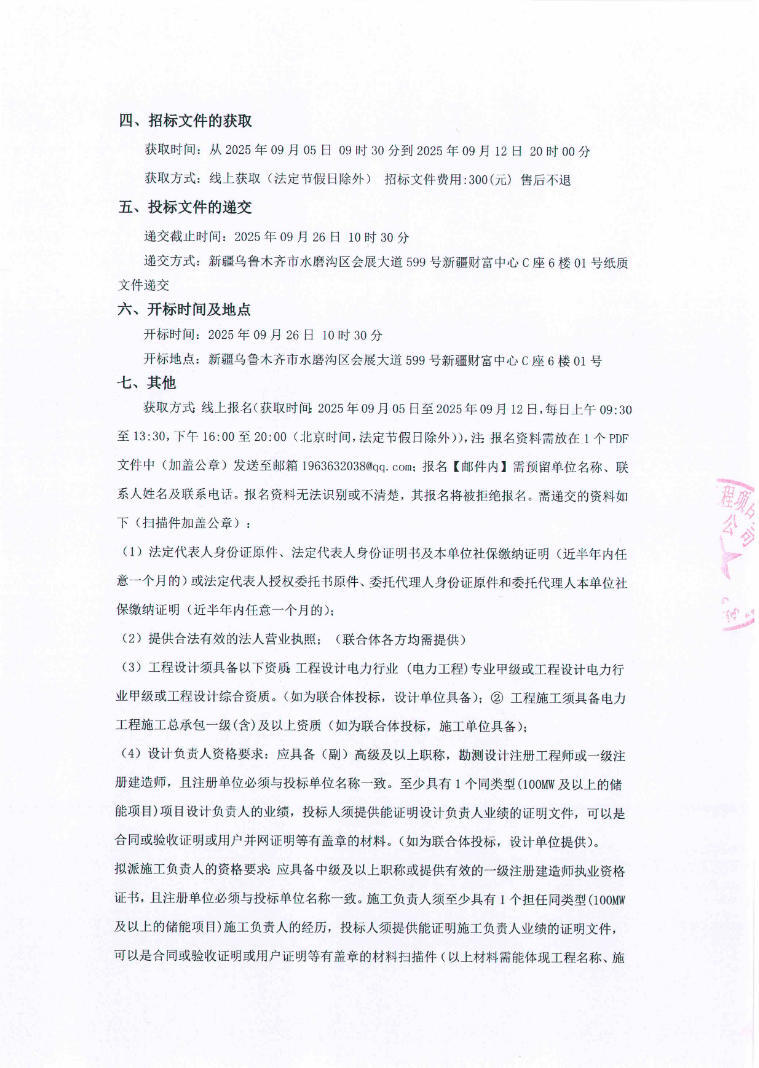 近日,博州华赛博乐市25万千瓦/100万千瓦时独立新型储能建设项目工程总承包公开招标公告发布。
