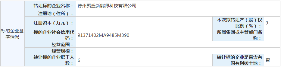 据悉,转让公司由京能(德城区)新能源科技有限公司(91%)和中国电建集团江西省电力建设有限公司(9%)共同持股。