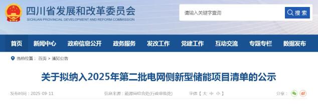 关于拟纳入2025年第二批电网侧新型储能项目清单的公示