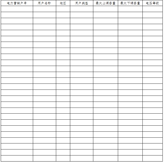 填写说明:用户类型、地区、电压等级按电力营销系统中分类填写。